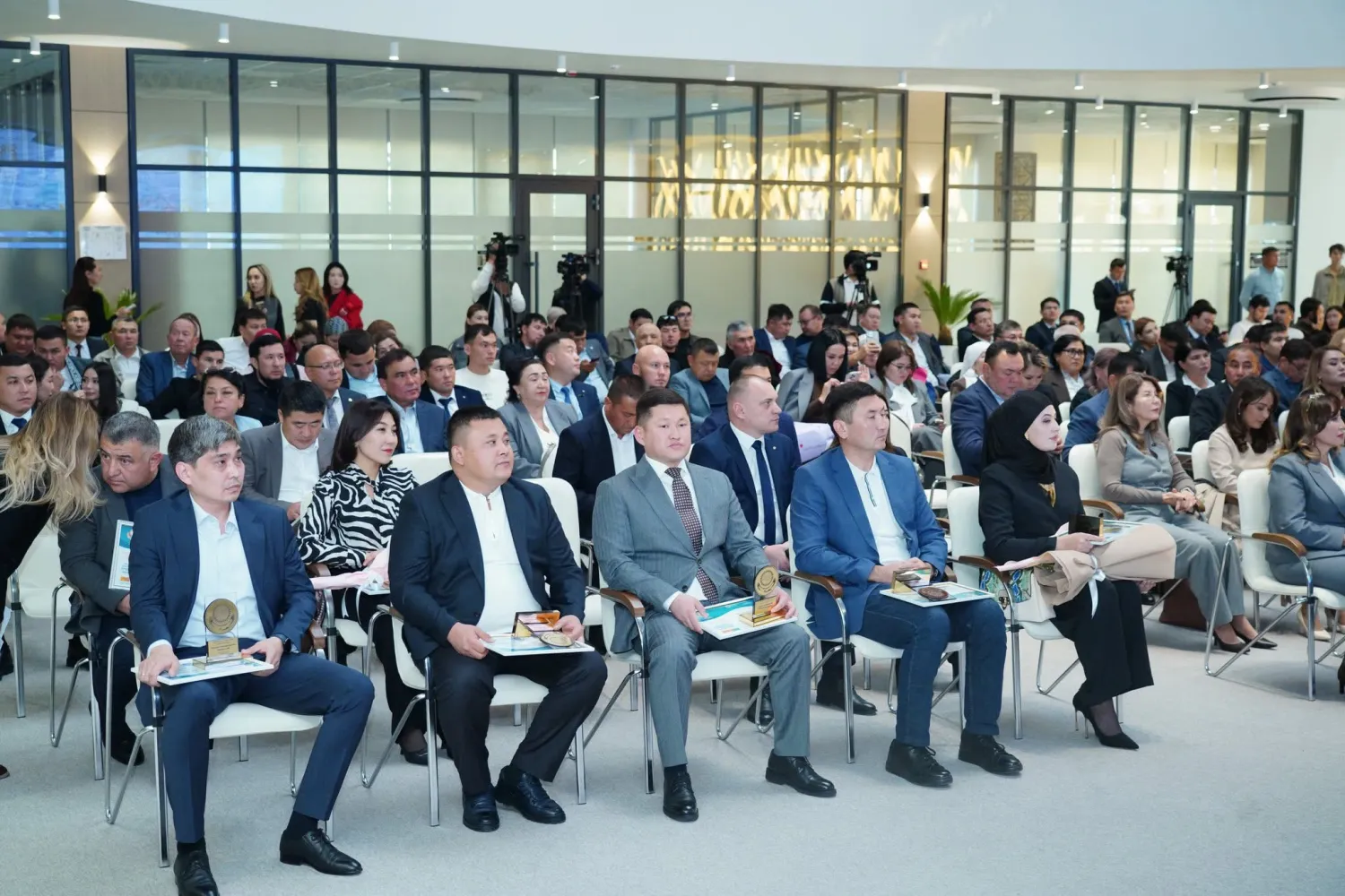 Салтанатты шарада облыс басшысы «Қазақстанның үздік тауары» өңірлік көрме-конкурсының жеңімпаздарын және кәсіпкерлікті дамыту мен инвестиция тартуда үздік нәтиже көрсеткен компанияларды марапаттады. Сондай-ақ өңір экономикасына инвестиция тартуда және жобаларды жүзеге асыруда белсенділік танытқан кәсіпкерлер де облыс әкімінің алғыс хатымен марапатталды.